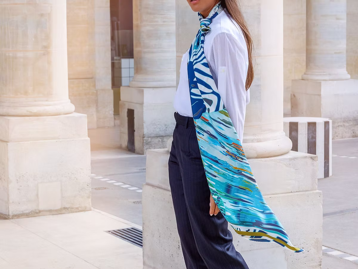 Je ne fais pas de mode au sens strict. Je vois mes créations comme des pièces intemporelles, qui échappent aux saisons. Mon approche est celle d’une artiste qui s’exprime par le textile. Mais je suis heureuse si mes foulards peuvent s’intégrer dans la garde-robe d’une femme, comme un éclat poétique au quotidien.